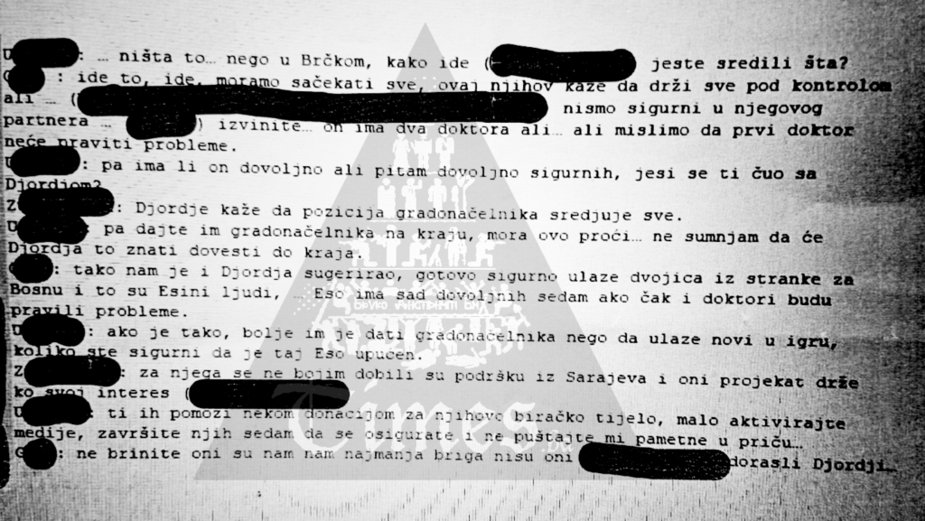 Redakcija portala “TIMES.BA” putem svojih izvora došla je do nezvaničnog obavještajnog dokumenta koji se vodi kao javna tajna, u kojem političar iz vlasti Brčko distrikta BiH u vremenu iz 2020. godine zajedno sa poznatim političarem iz Republike Srpske i jednim privatnim privrednikom iz Brčko distrikta BiH vode konverzaciju gdje dogovaraju podjelu vlasti, vladajuće većine u Skupštini BD BiH i ko će biti Gradonačelnik Brčko distrikta BiH. Razgovor se odvijao u glavnom gradu Republike Austrije odnosno u Beču (Vienna).